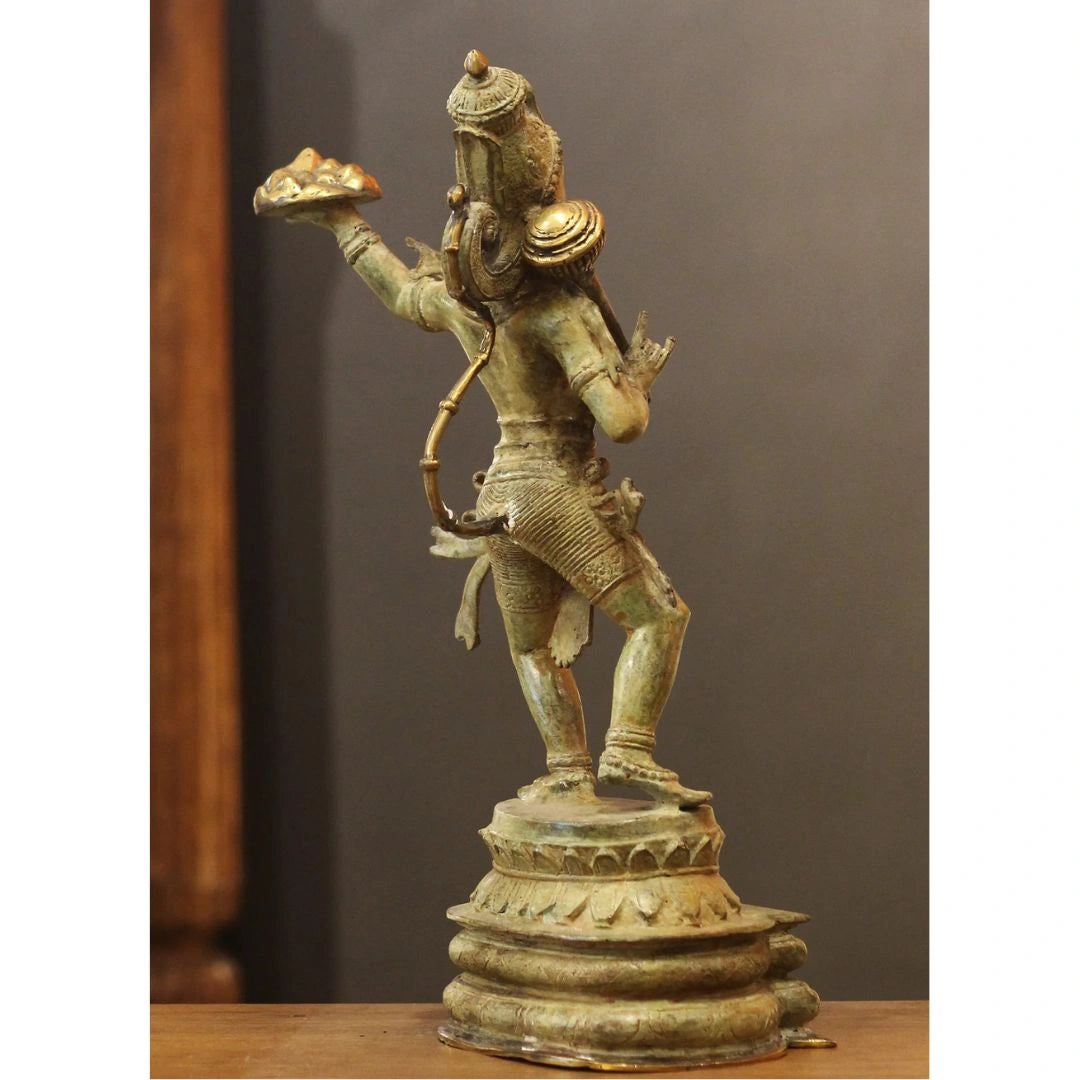 Crafted in the traditional Javanese style, the sculpture reflects a harmonious blend of spiritual depth and artistic finesse. The rich bronze surface, enhanced with a subtle patina and soft golden highlights, brings warmth, movement, and character to the form, celebrating Indonesia’s deep connection to Hindu mythology and skilled craftsmanship.