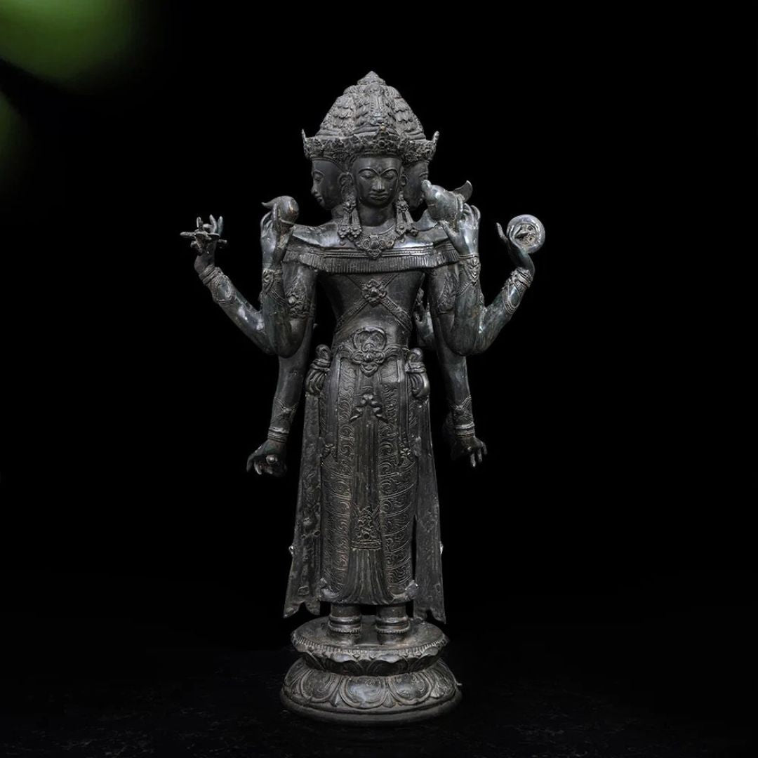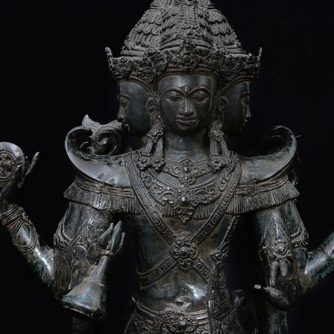 Own an exceptional bronze sculpture of Four-Faced Brahma, meticulously handcrafted by master artisans of Indonesia. Directly sourced from Bali, this sculpture features a distinctive antique patina finish that is characteristic of traditional Balinese bronze artistry. Rich in detail and spiritual significance, the four faces of Lord Brahma symbolize wisdom, creation, and universal balance, making this piece a powerful statement of devotion and heritage.