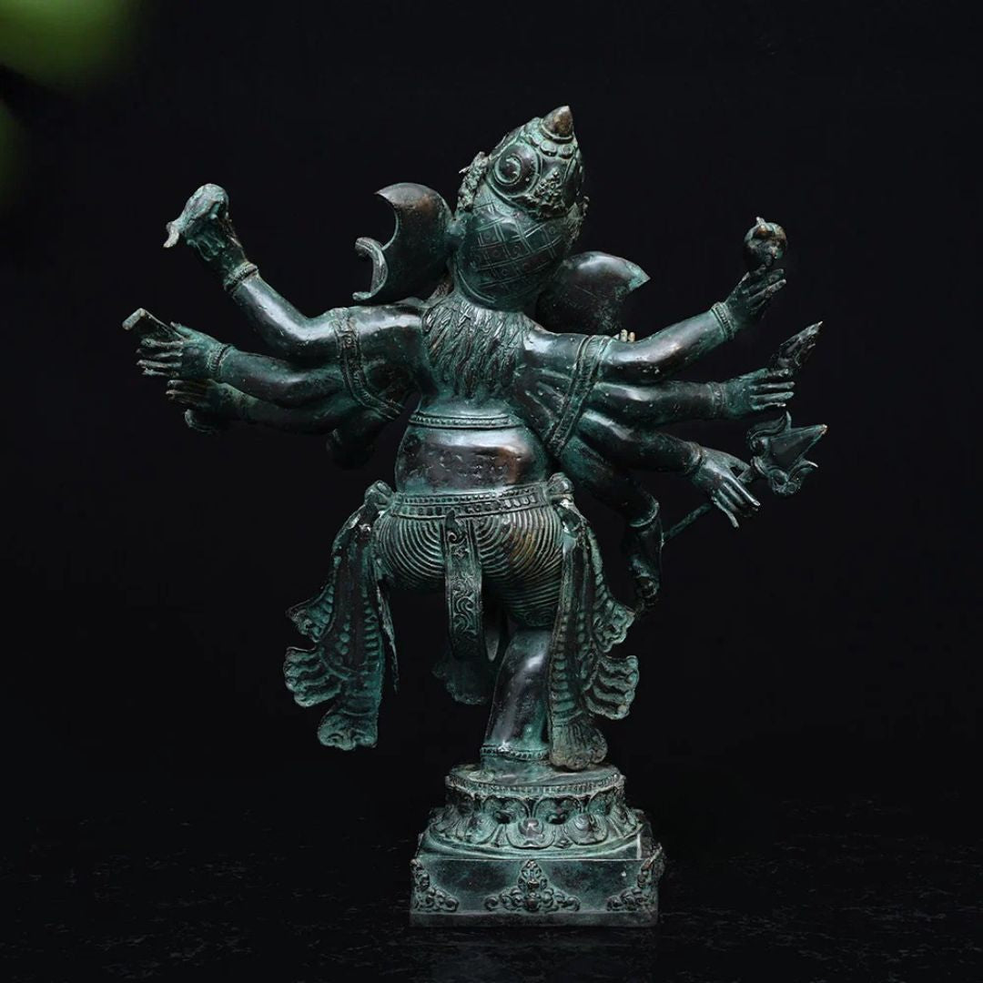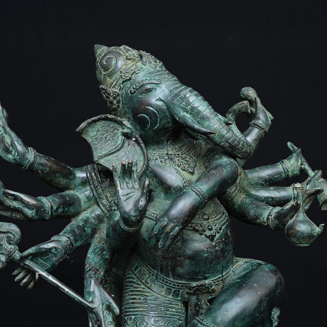 This stunning Indonesian bronze Dancing Ganesha sculpture, enhanced with a rich antique patina, is a true statement piece. Capturing Lord Ganesha in a graceful dancing pose, it radiates joy, positivity, and artistic charm. The intricate craftsmanship and timeless finish make it a beautiful addition to any living space, altar, or décor corner. Bring this exquisite sculpture home and invite Ganesha’s auspicious energy to uplift your surroundings.