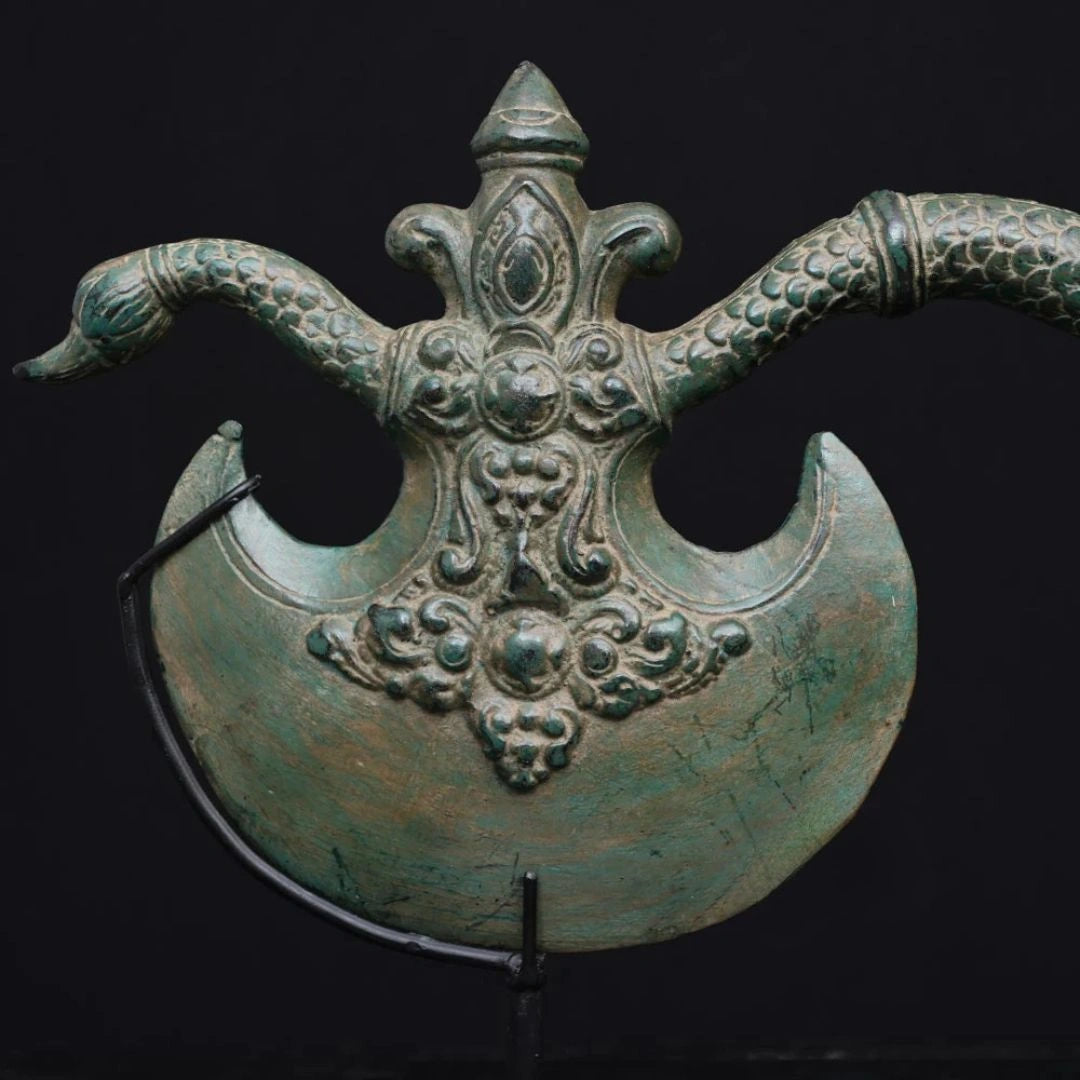 1 Decorative Balinese Bronze Axe with Wooden Base