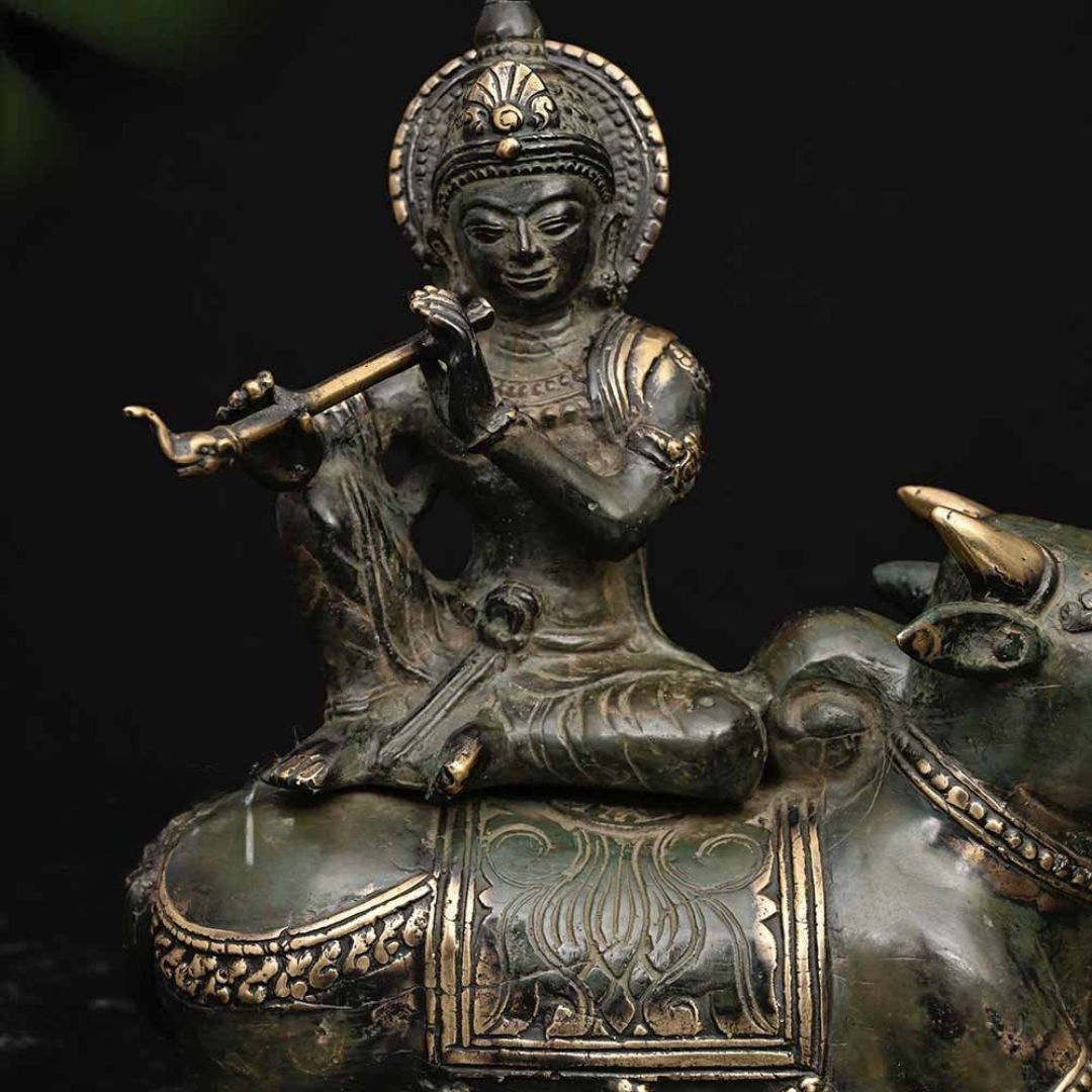 1 Bronze Krishna on Cow Sculpture